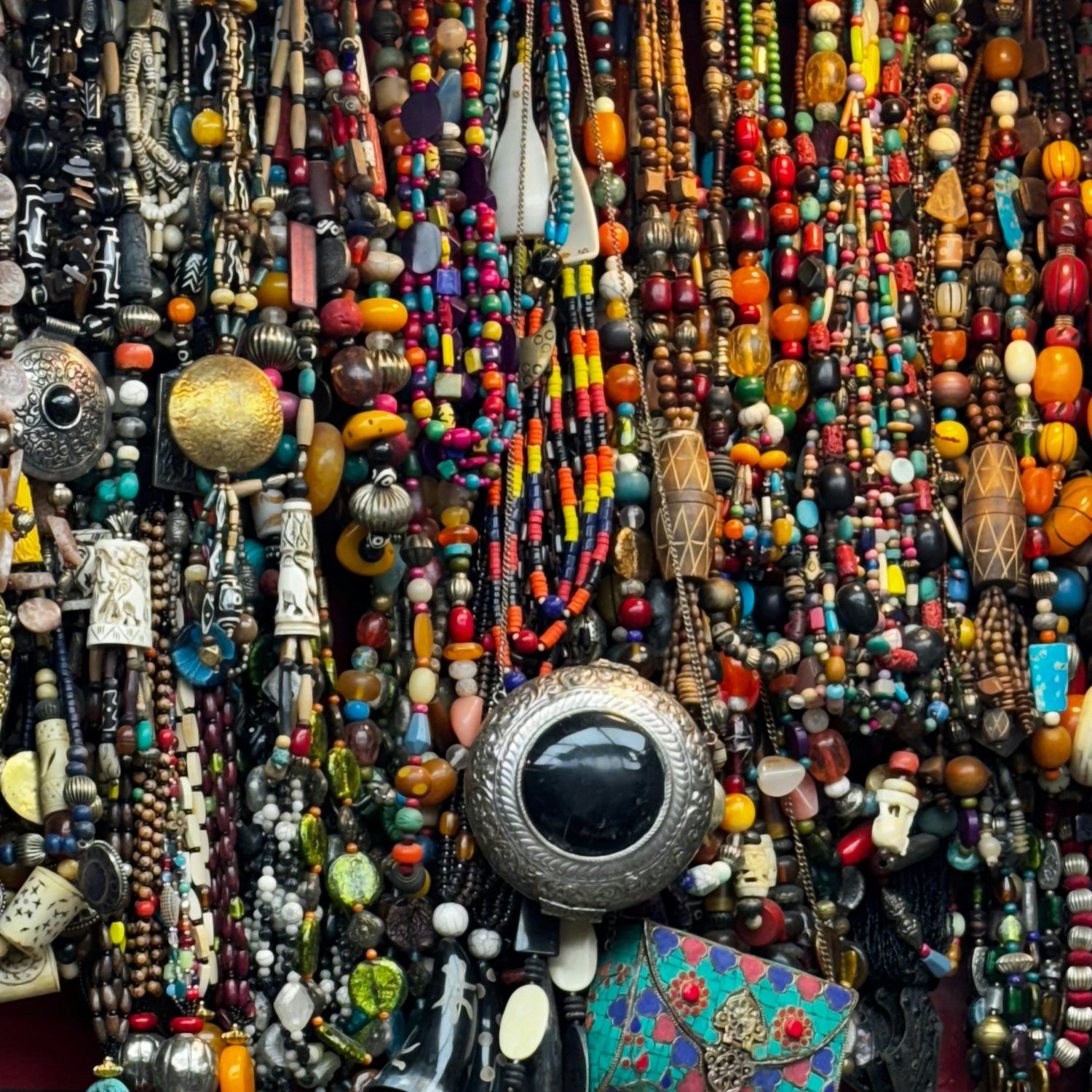 Our beaded jewellery is handcrafted from glass and plastic beads, natural fibers, and sometimes accented with brass, wood, or leather. Each piece is made with care, designed to be both lightweight and durable, so it can move with you and your story.